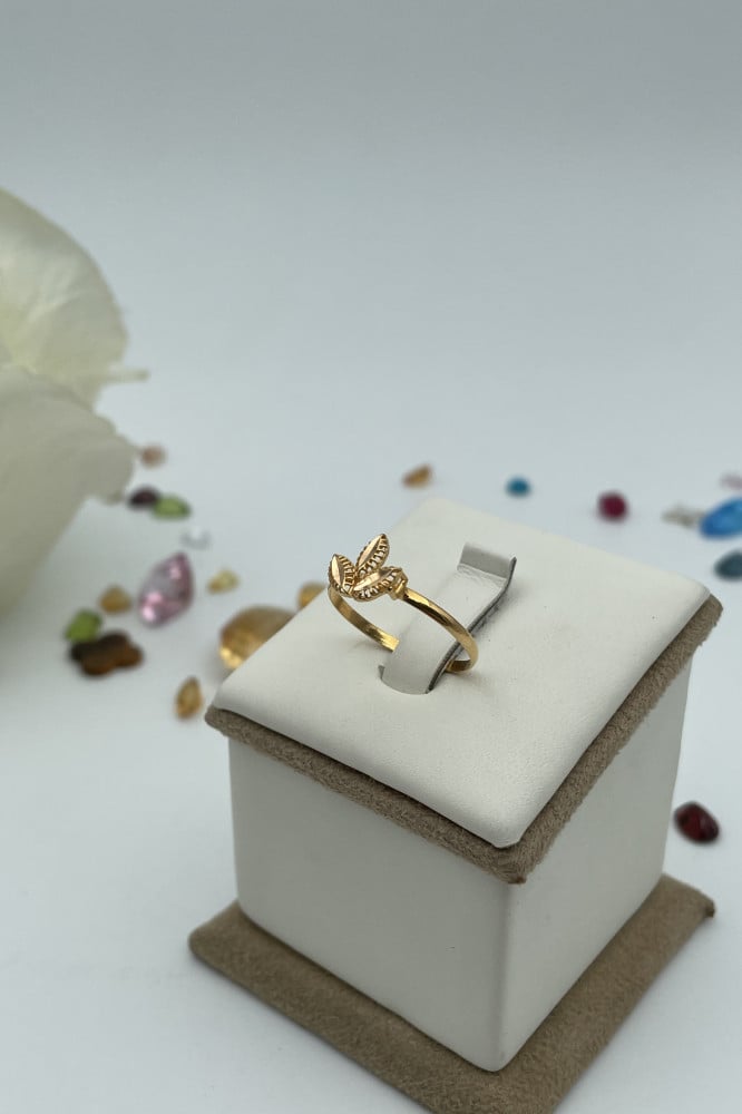 - أكثر ما يميز خاتم ذهب هو تصميمه الأنيق الذي يجسد شكل غصن الزيتون بدقة فنية عالية، الخطوط الانسيابية التي تشبه أوراق الزيتون تلتف حول الإصبع برقي، مما يضفي شعور بالانسجام مع الطبيعة ويعزز الإحساس بالجمال الطبيعي.