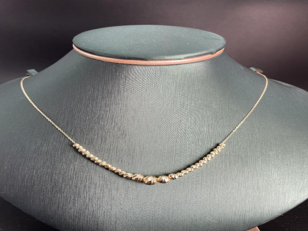 - عقد ذهب ايطالى يتميز بتصميم عصري وفريد، مما يجعله قطعة مميزة تبرز أناقتك في كل مناسبة.