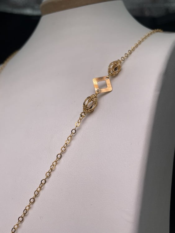 مواصفات سبحة ذهب بنقوش كروية ومربعات هندسية عيار 21