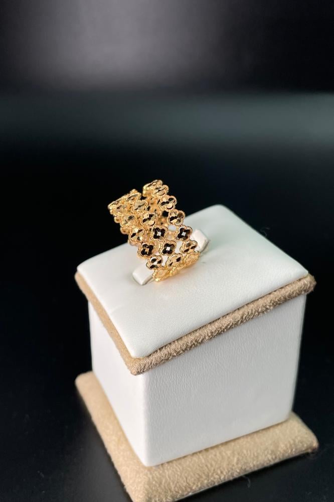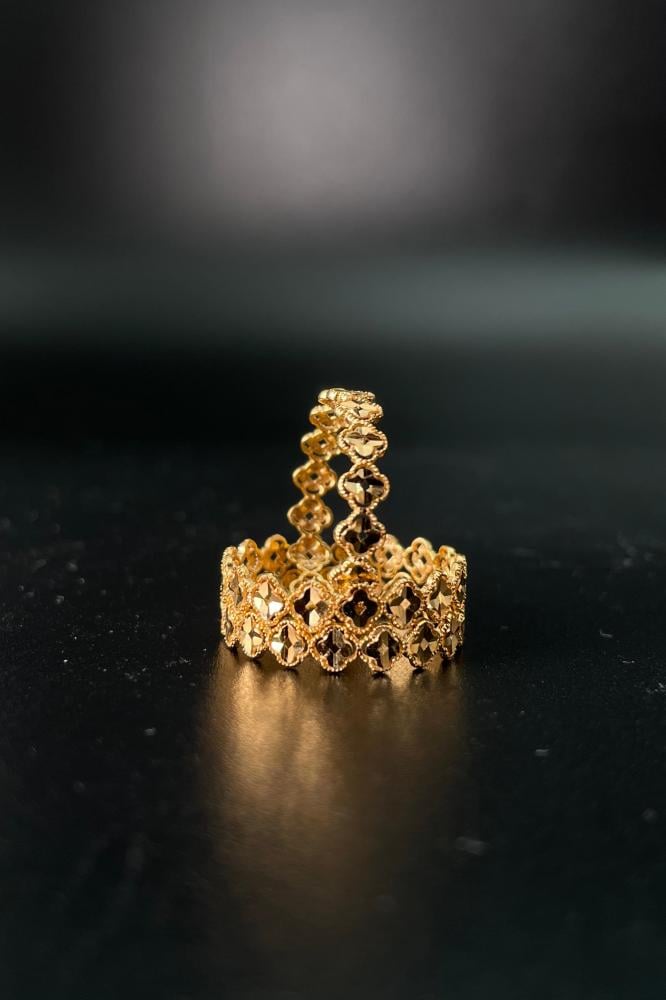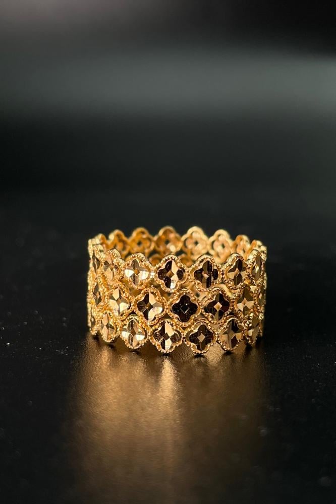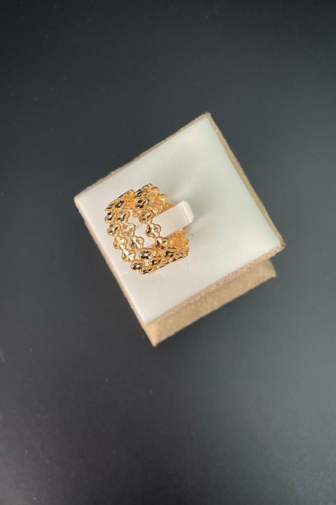 - يمكن تنسيقه بسهولة مع مجموعة متنوعة من الأزياء والمجوهرات الأخرى مما يجعله قطعة متعددة الاستخدامات، بالإضافة إلى جماليته يوفر الخاتم متانة مميز بفضل استخدام الذهب عيار 21.